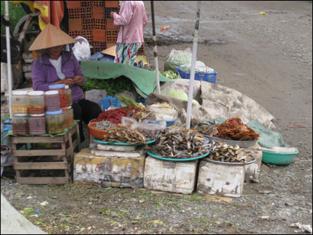 Theo quan sát của chúng tôi, hiện trên thị trường đang bày bán đủ món khô, mắm đặc sản, từ các loại khô ăn liền như khô mực tẩm, khô ḅ, cá cơm sấy, cá khô các loại... nhưng có khi giá chỉ vài chục ngàn đồng/kg. Tại chợ An Đông, các tiểu thương cho biết, tôm, mực khô, cá tẩm đường, ớt bột là những mặt hàng đang bán chạy nhất. Hầu hết các sản phẩm này đều được tẩm màu cho bắt mắt. Người bán hàng mặc sức "tô vẽ" những thực phẩm này để càng lâu càng ngon, càng chất lượng (!?).