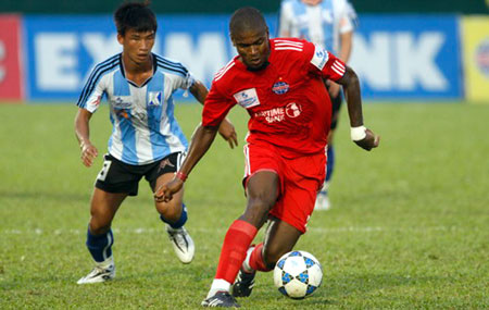 Ngay vòng đầu tiên, HAGL (trắng) đã phải gặp đối thủ khó chơi, V.Hải Phòng
