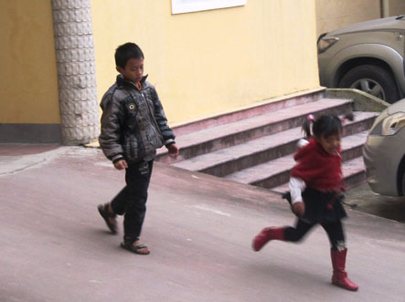 Hai đứa trẻ hồn nhiên tại phiên tòa xét xử bố mẹ chúng.