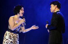 Tuấn Ngọc và Mỹ Linh trên sân khấu Riêng một góc trời.