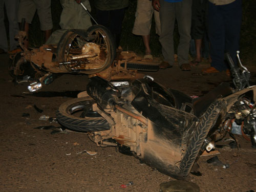 Tai nạn khiến Quang, Thọ và Thắng chết tại chỗ. Hai xe máy hư hỏng nặng.