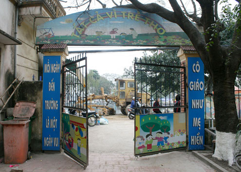 Cách cổng trường Mầm non Đại Kim chừng chục mét, chiếc xe ủi và xe lu hối hả san, là mặt đường khiến khu vực này khá ồn ào. Hơn 10h, sau khi nhận được tin báo của giáo viên, nhiều phụ huynh đã nghỉ việc vội vã đến trường đón con để tránh nguy hiểm.
