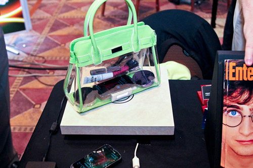 Nói một cách chính xác hơn, bạn phải đặt điện thoại trên cùng một bề mặt với chiếc túi xách, lúc đó cơ chế sạc không dây sẽ tự động kích hoạt và không cần người dùng phải thực hiện thêm bất kỳ thao tác nào. Chiếc túi xách được thiết kế như một phần cứng có khả năng nhận biết bề mặt và các thiết bị di động hiện có trên bề mặt đó, rất thông minh và tiện lợi cho người dùng.