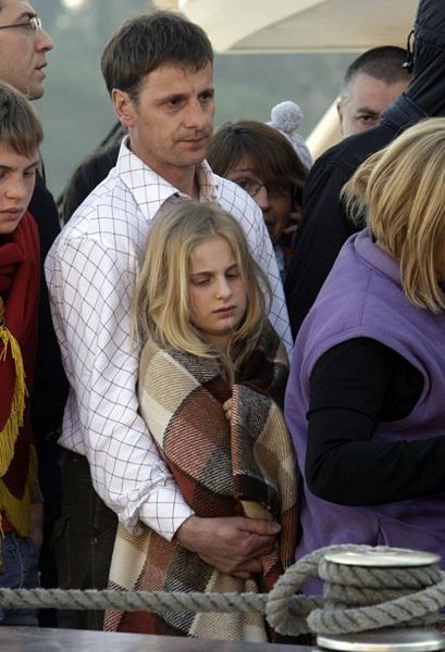 Gương mặt thất thần của một bé gái sau khi được sơ tán khỏi tàu.