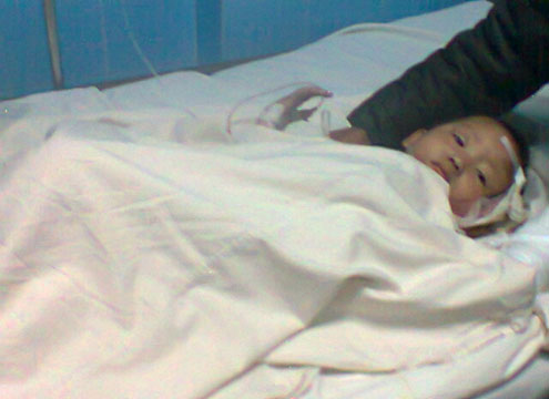 Cháu Phương Trinh đang được điều trị tại bệnh viện. Ảnh: L.N.