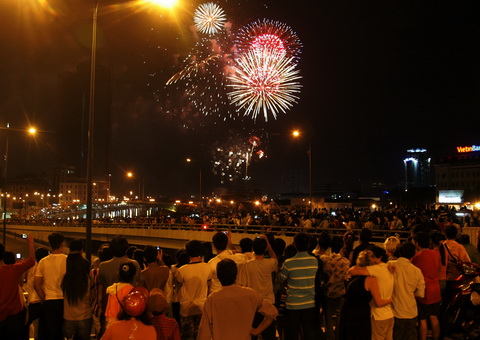 Giao thừa đă đến. Năm cũ vĩnh viễn khép lại. Người dân Sài G̣n đón chào năm mới bằng những nét vui tuơi và sự phấn khởi tin yêu. Đại lộ Đông Tây nghẹt người xem, những vị trí khác muôn trùng người thưởng lăm. Tất cả đă nói lên được cuộc sống của người dân trong năm qua đă cải thiện rơ rệt. Trong số những người đi xem bắn pháo hoa giao thừa năm nay, chúng tôi nh́n thấy thấp thoáng bóng dáng của nghệ sĩ cải lương Quế Trân và ông Đặng Ngọc Khoa. Quế Trân hiện là đại biểu của HĐND TP và ông Khoa cũng vừa măn nhiệm. Cả hai đều nở những nụ cười trên môi, rạng rỡ chào mừng năm mới.