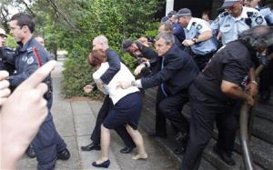 Thủ tướng Úc bị xô tuột cả giày trong đám đông biểu tình