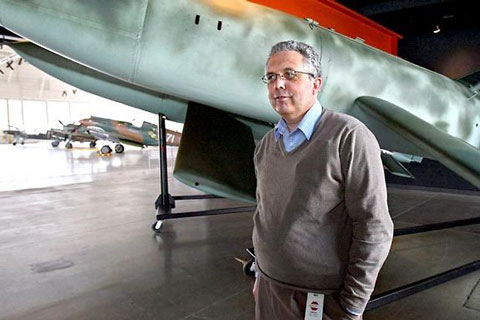 Tỷ phú Paul Allen bên chiếc phi cơ chiến đấu tại pḥng trưng bày riêng. Ảnh: