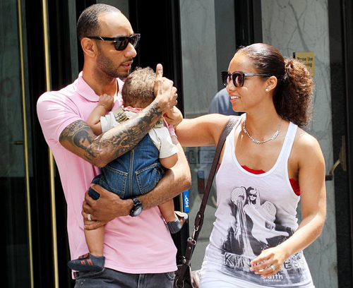 3/4/2011: Alicia Keys cùng ông xã là Swizz Beatz và cậu nhóc Egypt - vẫn còn cuốn trong tã, đi dạo quanh thành phố New York. Alicia cho biết chưa bao giờ cô cảm thấy "mạnh mẽ, yêu đời và tràn ngập niềm tin" như khi được làm mẹ vào tháng 10/2010.