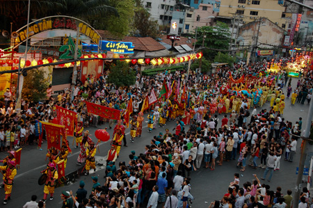 Hàng năm, cứ sau Tết Nguyên đán, bà con người Việt và người Hoa ở khu vực Chợ Lớn (TPHCM) lại nô nức đón Tết Nguyên tiêu với đèn lồng rực đỏ và rộn ră tiếng trống múa rồng.