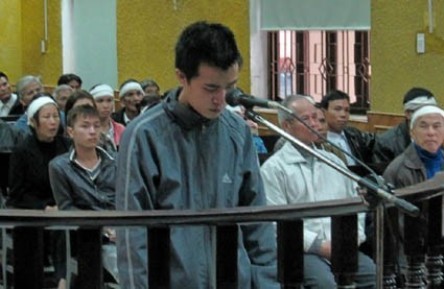 Tại phiên ṭa sơ thẩm, bị cáo Trần Văn Thắng đứng cúi gằm trước vành móng ngựa, khuôn mặt thư sinh của hắn hiện rơ vẻ ăn năn. Phía dưới khán pḥng, bên trái là gia đ́nh nạn nhân với những vành khăn tang trắng, không khí tang thương, uất hận vẫn bao trùm trên khuôn mặt của gia đ́nh họ, bên phải là những khuôn mặt lo âu của gia đ́nh và người thân bị cáo, những ánh mắt đau xót và thấp thỏm lo cho tương lai của con em ḿnh đang bị che lấp bởi hành vi phạm tội bột phát.