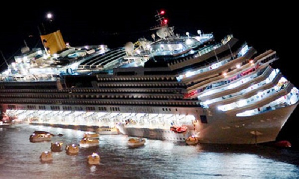 Một chuỗi những sự kiện kì quặc đã xảy đến với con tàu này. Ngày 07/07/2006 là ngày con tàu hạ thủy. Theo truyền thống, mỗi con tàu mới sau khi hoàn thành, lúc hạ thủy được chúc phúc bằng cách quăng một chai rượu champagne mạnh vào vỏ tàu. Chai rượu vỡ, đồng nghĩa với việc con tàu sẽ gặp nhiều may mắn. Ngược lại, chai rượu không vỡ là một điềm gở. Và điều không ai muốn đã xảy ra, chai rượu không hề hấn gì sau cú va cực mạnh với vỏ tàu. Nhiều người cho rằng không sớm thì muộn, con tàu sẽ có một kết cục bi thảm. Chưa đầy 6 năm, nó đã gặp nạn hai lần: lần đầu vào năm 2008 và lần này vào thứ sáu, ngày 13/01/2012 - ngày đáng sợ đối với người phương Tây.