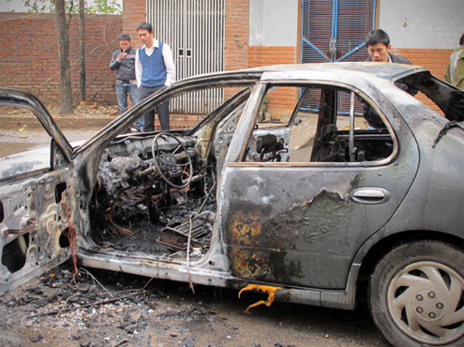Chiếc Nissan màu xám tại Hà Nội cháy còn trơ khung