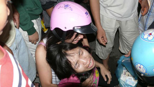 Người vợ đau đớn nhìn chồng chết thảm dưới bánh xe tải