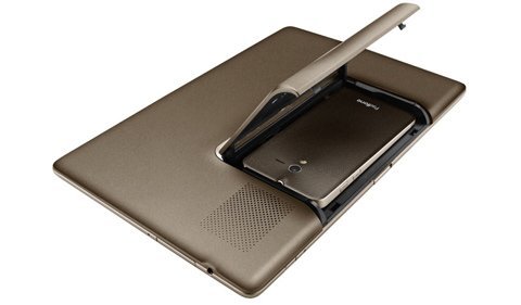 Phần tablet có một khe để lắp chiếc điện thoại. Khi đó, chiếc smartphone sẽ trở thành trung tâm xử lí cho một máy tính bảng 10,1 độ phân giải 1280 x 800, có lớp chống trầy Gorilla Glass. Tablet có nhiệm vụ sạc pin cho smartphone giúp mở rộng dung lượng pin của Padfone lên 5 lần.