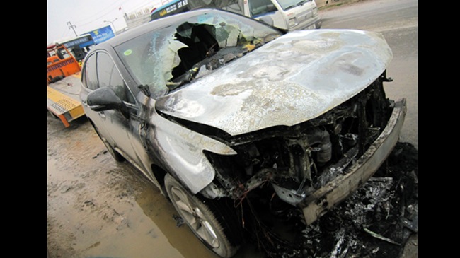 Dù chủ xe và người dân khu vực tích vực tích cực dập lửa, đồng thời 2 chiếc xe chữa cháy chuyên dụng của lực lượng PCCC được điều đến hiện trường, nhưng chiếc xe vẫn bị cháy rụi phần đầu.