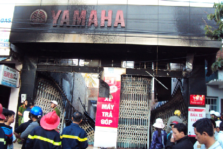 Hiện trường vụ cháy cửa hàng xe máy