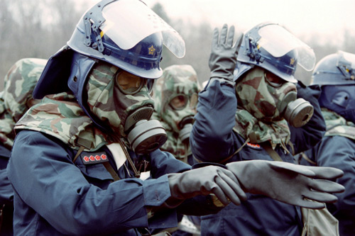 Bộ quốc phòng Hàn Quốc đã trình bày các biện pháp để đối phó với 4 mức báo động trước nguy cơ của các vũ khí sinh học. Các mức báo động được đánh dấu theo màu sắc bao gồm – canh phòng (màu đỏ), tăng cường (vàng), cao độ (da cam), và nghiêm trọng (đỏ).