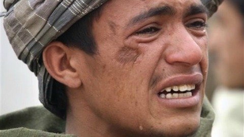 Nước mắt của một người Afghanistan có thân nhân bị giết hại trong vụ xả súng. (Ảnh: AP)