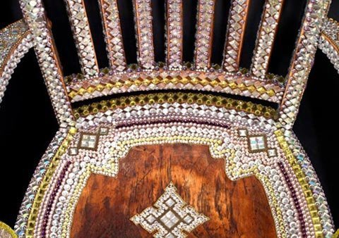 Bên dưới những viên đá quý này là một chiếc ghế tựa làm bằng gỗ cứng. Mất rất nhiều thời gian để hoàn thành xong chiếc ghế này, bởi người ta phải dùng nhíp và những dụng cụ chuyên làm đồ trang sức và dùng tay để đính từng viên đá một. Sau một vài năm vất vả, chiếc ghế mới có hình hài như bây giờ.