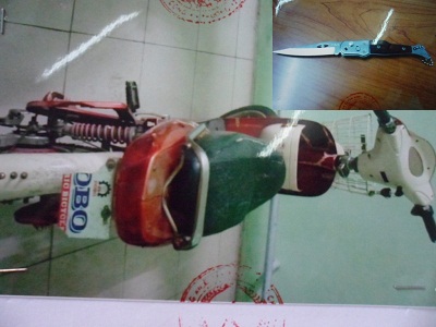 Chiếc xe đạp điện là tang vật vụ án và con dao gây án