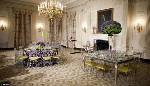 Thủ tướng Anh David Cameron và phu nhân Samantha Cameron đã tham dự một bữa tiệc chiêu đãi cấp nhà nước do Tổng thống Mỹ Barack Obama chủ trì tại Nhà Trắng vào tối 14/3.