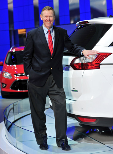 | Alan Mulally tại gian hàng của Ford ở một triển lãm quốc tế. Ảnh: Automotiveit. |
