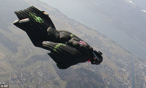 Nhà nhảy dù Remo Laeng, 36 tuổi, đã nhảy xuống từ trên máy bay ở độ cao 7,500 mét, gần khu nghỉ dưỡng trượt tuyết Verbier của Thụy Sĩ và bay qua dãy núi An-pơ ở phía nam. Ông đã nhảy dù trong nhiệt độ âm 60 độ F và đạt đến vận tốc 500 km một giờ giữa không trung.