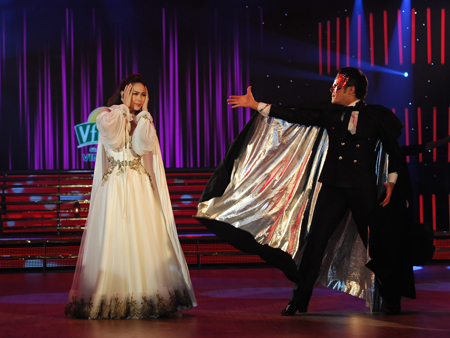 Minh Hằng “chôm” giọng Lan Anh để biểu diễn tác phẩm kinh điển The Phantom of Opera trong đêm mở màn Bước nhảy hoàn vũ. Ảnh: TL
