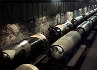 Để tránh các cuộc ném bom của Đồng minh, các nhà máy của Đức ngày càng chui sâu vào ḷng đất. Trong bức ảnh là ḷng núi đá.