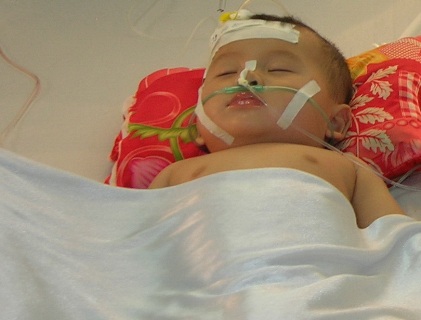 Hiện nạn nhân gần 2 tuối nhưng chưa biết nói, cứ nằm một chỗ liên tục la khóc, đôi lúc lên cơn co giật.