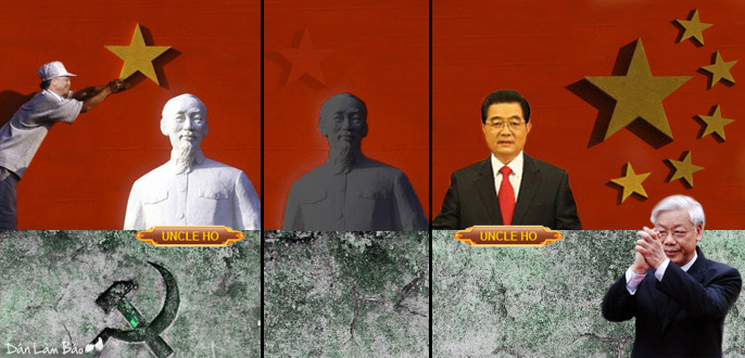 Trong hai lựa chọn ấy, cái cục to đối với họ là sự tồn vong của đảng, của chế độ cộng sản và thế là họ đã chọn. Để tồn tại, cộng sản Việt Nam không thể không dựa vào cộng sản Trung Quốc. Biết dựa vào ai đây? Trong nước thì người dân oán ghét, căm thù. Quốc tế thì người ta xa lánh như xa lánh bệnh hủi. Muốn dựa được vào tên hàng xóm hung tợn, đầy mưu đồ, và đầy tham vọng này không thể không chấp nhận cắt đất, không thể không hiến biển đảo, không thể không chấp nhận thân phận tôi đòi. Và thế là chuyện mất núi Lão Sơn, mất Ải Nam Quan, hiến thác bản Giốc đều trở thành những cục nhỏ. Những cái cục nhỏ này đảng bỏ qua, không thèm ăn. Trên đất liền thì như vậy, còn trên biển thì sao? Lần lượt Hoàng Sa, đến một phần Trường Sa rồi đến đường lưỡi bò chín đoạn ôm gọn biển Đông của Trung Quốc đều dần dần được cộng sản Việt Nam công nhận. Khi thì công khai thừa nhận như công hàm năm 1958, lúc thì ngấm ngầm thừa nhận như ngày nay. Cái cục này lại cũng là cái cục bé tí bé ty, ăn mà làm gì?