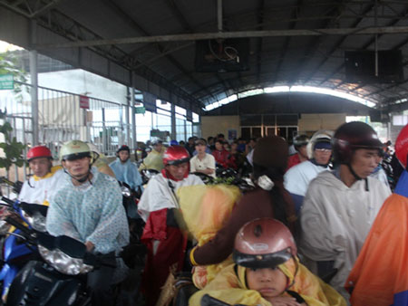 Tình trạng người dân bị mắc kẹt ở bến phà Cát Lái phía bờ huyện Nhơn Trạch - Đồng Nai cũng tương tự. Chính quyền huyện Nhơn Trạch cũng đã có mặt kịp thời hỗ trợ nơi ở tạm và phục vụ thức ăn, nước uống cho hàng trăm người trong thời gian chờ bớt mưa giông để qua phà.