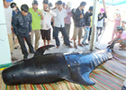 Rạng sáng 2/4, sau khi bão số 1 đi qua, ngư dân phát hiện một con cá ông (cá voi) dài khoảng 4 m, nặng khoảng 600 kg bị trôi vào bờ.