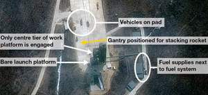 Một bức ảnh vệ tinh chụp ngày 31/3 cho thấy công tác chuẩn bị cho vụ phóng tên lửa của Triều Tiên. Trang web 38north.org thuộc Viện Mỹ-Hàn thuộc Đại học Johns Hopkins, Mỹ cho hay việc phân tích một bức ảnh vệ tinh chụp địa điểm phóng ngày 4/4 tại Tongchang-ri ở tây bắc Triều Tiên cho thấy tầng thứ nhất của tên lửa Unha-3 có thể đă được đặt vào bệ phóng, dù không được nh́n thấy trong bức ảnh.