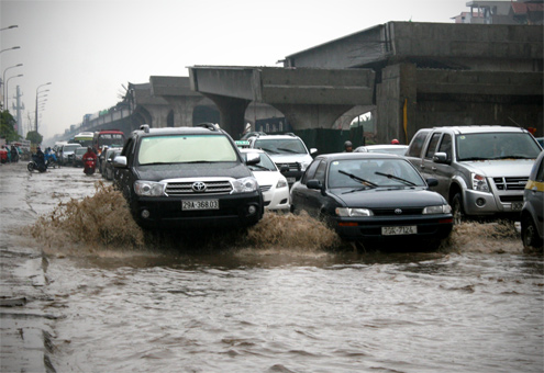 Cơn mưa lớn nhất kể từ đầu năm đã khiến nhiều tuyến phố ở Hà Nội ngập sâu, phương tiện đi lại khó khăn. Tuy nhiên, mưa lớn vào cuối tuần nên không xảy ra ùn tắc nghiêm trọng.
