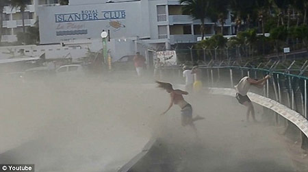 Khi một chiếc máy bay chuẩn bị cất cánh từ sân bay quốc tế Hoàng tử Juliana của đảo Saint Martin trên vùng biển Caribbean, một luồng gió cực mạnh khiến mọi người chạy tán loạn. Một cô gái chưa rõ danh tính đang tận dụng luồng gió đó để hong tóc cố gắng bám lấy hàng rào nhưng cuối cùng cũng bị thổi bay ra xa và ngã đập đầu vào bức tường bê tông gần đó.