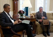 Bức ảnh được chụp ngày 31/1/2012, các quan chức cho biết đó là ngày đầu tiên iPad được sử dụng để cung cấp các thông tin t́nh báo cao cấp hàng ngày cho tổng thống (gọi tắt là PDB).