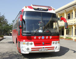 Chiếc xe khách nhốt CSGT. Ảnh: N.Đ.