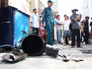 Bình bơm hơi nổ văng ra khỏi tiệm sửa xe khoảng 5 m