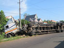 Khi đến đoạn cua gấp khúc thuộc thôn Tân Hòa (xã Bù Nho, huyện Bù Gia Mập), do chạy với tốc độ cao, tài xế container không làm chủ tay lái đã làm xe bị lật nghiêng rồi trượt dài trên đường.