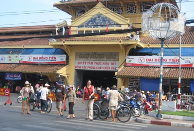 Mặt tiền chợ B́nh Tây vẫn c̣n bộ mặt bề thế nhưng mọi thứ không c̣n bản sắc văn hóa xưa. (H́nh: Trần Tiến Dũng/Người Việt)