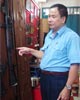 Ông Nguyễn Quang Vinh giới thiệu bộ ván rỗng ruột giấu vũ khí. Ảnh: CAND.