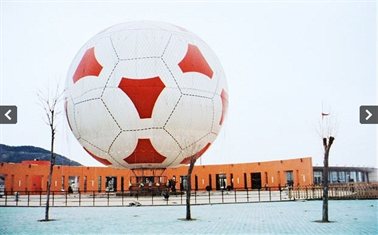Quả khinh khí cầu h́nh bóng đá do Cốc Khai Lai mua về được đặt ở quảng trường Xinghai , Đại Liên, Trung Quốc.