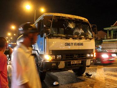 Vừa lúc đó, xe bồn của công ty Vũ Hoàng BKS 57K-0897 (chưa rõ người điều khiển) từ phía sau chạy tới, không thắng kịp nên đã cán qua người chị Năm, làm chị tử vong tại chỗ.