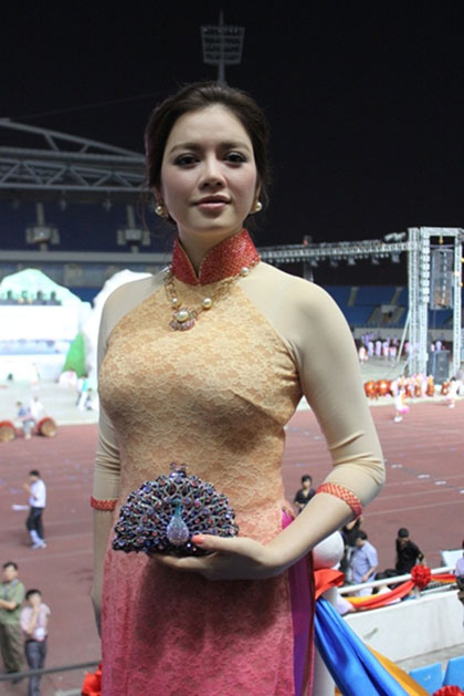 Tối 27/4 vừa qua, xuất hiện trong lễ công bố Vịnh Hạ Long – Kỳ quan thiên nhiên thế giới mới, Đại sứ Du lịch Việt Nam Lý Nhã Kỳ dịu dàng trong tà áo dài màu hồng, người đẹp còn gây sự chú ý khi mang theo chiếc ví nạm đá quý hình chim công đắt tiền.