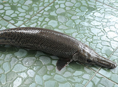 Con cá này là ALLIGATOR GAR, ở Mỹ có nhiều, chắc do ai sưu tầm nuôi thấy lớn quá thành ra ''sợ'' đem bỏ xuống sông.