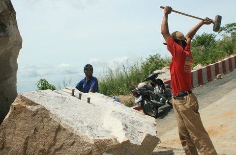 Xót lòng khi nhì thấy anh công nhân nhỏ thó cầm cái búa 5 kg đập tảng đá "khổng lồ, vĩ đại" quả là xứ sở văn minh