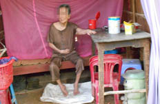 Trong căn chòi lá xiêu vẹo nằm kế bờ ao sau nhà, cụ M vẫn ngô nghê cười. Nụ cười của người bị tai biến, liệt nửa thân đã gần như không còn biết nhận thức được thế giới xung quanh.