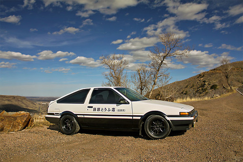 Một trong số đó là Toyota Spinter Trueno 1984 với màu sơn nguyên bản "Panda Car". Tông màu đen-trắng lấy từ "Initial D", bộ phim hoạt h́nh và truyện tranh nổi tiếng của Nhật kể về một tài xế trẻ tuổi trở thành vô địch đua đường phố.